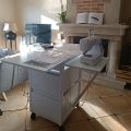 Die beiden Seitenplatten ermöglichen eine gleichzeitige Nutzung der Nähmaschine und eines anderen Werkzeugs wie einer Overlock-Nähmaschine oder einem Computer zur Verwendung digitaler Tools.
